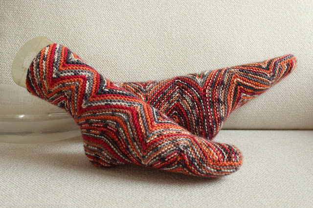 The pattern calls for sport weight yarn, but as the options at my LYS were much better in fingering weight I decided to go with Hedgehog Fibres Sock. The fit of this garment is not really an issue, so I simply followed the instructions for the largest size and got a nice medium-large result. Although, I have to admit that before blocking I was slightly worried that it would be too small, but I'm happy with the size after blocking.